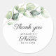 Eucalyptus Watercolor Chá de panela Obrigado Clássico Round Sticker que é fácil de personalizar para qualquer ocasião especial, incluindo aniversários, confirmação, casamentos, batismo e aniversários