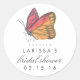 Apesar de elegante, nossos adesivos de chá de panela da Borboleta da Watercolor apresentam uma ilustração da borboleta em cores vermelhas suaves e ouros com seu texto personalizado em cinzas de carvão chico — nome de convidado de honra, tipo de evento e data.