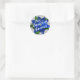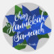Blue Poinsettia Hanukkah, um adesivo clássico redondo com cinza e Chag Hanukkah Sameach (Feliz Natal de Chanucá) dizendo, abaixo está seu nome de família que você pode personalizar. Um belo adesivo para fechar os envelopes do cartão de saudação de Chanucá ou para selar os presentes de Chanucá.