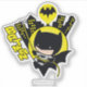Veja Chibi Batman escalando os edifícios altos da Cidade de Gotham usando seu gancho de lutas para responder ao chamado do Sinal de Bat.