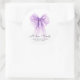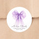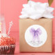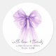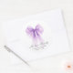 Adesivos chiques de chá de noiva para seus brindes e cartões de agradecimento com uma aquarela elegante de um laço de coquete roxo, "com amor e gratidão" apresentado em uma fonte de caligrafia, e o nome da noiva e a data do chá em letras simples.