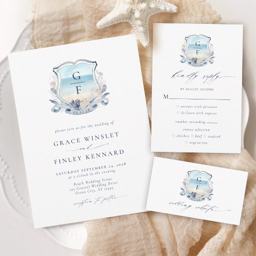 Elegant Coastal Chic Beach Wedding Monogram Crest Criado por Connie R.