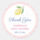 Obrigado por adesivos por qualquer evento (mostrado aqui para um chá de fraldas, mas todos os campos de texto são personalizáveis). O design apresenta uma ilustração simples de limão de aquarela e uma borda de azulejo de safra rosa e branca.