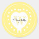 Este adesivo redondo apresenta um design amarelo e branco com nome próprio e letra inicial monograma sobre o coração branco rodeado de pontos. Personalize-o nos campos de texto com um primeiro ou sobrenome e inicial, remova o texto ou clique em personalizar para selecionar um estilo de tipo, tamanho e cor preferidos. Se você quiser o coração e pontos em uma cor específica que eu estou feliz em trabalhar com você, envie um e-mail para mim em theaspenstand@hotmail.com.