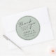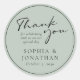 Caligrafia Moderna Chic Sage Favorito De Casamento Verde Obrigado Sticker... Um obrigado chic que você coloca com caligrafia moderna moderna por colocar em favores de casamento na sua recepção ou como um selo de envelope para casamento postado, obrigado cartas. Em um cenário verde leve. Todo o texto, exceto o gráfico de caligrafia, pode ser facilmente revisado com seus próprios detalhes no modelo de personalização. O texto de exemplo aparece no adesivo grande de 3".