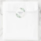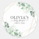 Adesivo Redondo Clássico Chá de Bebê Chic Moderno com Verdor Eucalipto Dourado. Com folhas de eucalipto aquarela e uma moldura geométrica dourada.