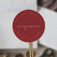 Estes adesivos circulares modernos de endereço de volta vermelho-chic são perfeitos para um cartão de na moda ou envelope de convite. Esta simples design boho apresenta caligrafia sofisticada clássica em vermelho e branco rústicos tradicionais.