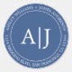 Chic, moderno e simples monograma de retorno de endereço clássico de adesivo redondo com suas iniciais monográficas em tipografia na moda branca elegante em um fundo azul clássico. Basta adicionar seu nome e endereço. Desenvolvido exclusivamente para você pelo Happy Dolphin Studio. Se precisar de ajuda ou produtos correspondentes, entre em contato conosco em happydolphinstudio@outlook.com. Estamos felizes em ajudá-lo a fazer seu casamento o dia mais bonito!