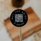 Este adesivo circular clássico de código QR compre um drink para a noiva preto chic é perfeito para uma festa de despedida de solteira simples ou um chá de noiva. O design simples e escuro apresenta uma tipografia minimalista clássica preta e branca com um visual sofisticado e elegante. Personalizável em qualquer cor.