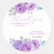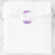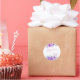 Elegante e simples adesivo de Chá de Panela com flor de rosa roxa e texto em caligrafia vibrante.
