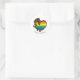 Colo de chocolate Labrador Rainbow Pride Classic Round Sticker para Proprietários de Labrador. Adorável Chocolate Labrador segurando um Coração Arco-Íris em seus braços. Este design é uma homenagem à diversidade e ao orgulho arco-íris e também é apenas um design de laboratório fofo. Cartoon Labrador Retriever Dog Whimsy e engraçado criado por Naomi Ochiai do Japão.