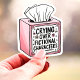 Este adesivo relacionável é perfeito para os livreiros e qualquer pessoa que se dedique emocionalmente às suas histórias favoritas! Apresentando uma caixa de tecidos com a frase "Chorando sobre os Caracteres Ficcionais", esta design é um tom humorístico ao poder da ficção. Feito com vinil durável, este adesivo é excelente para laptop, garrafas d'água, revistas e muito mais.