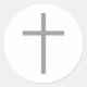 Cruz de prata sobre um adesivo branco redondo. Perfeito para qualquer igreja, escola de domingo ou ocasião cristã!