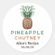 Etiqueta editável para conserva de chutney de abacaxi caseiro, apresentando uma ilustração de abacaxi em estilo vintage. Faça suas próprias etiquetas para suas receitas caseiras favoritas. Perfeito para conservas, presentes caseiros ou como organizador da despensa da cozinha.