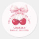 Sele as lembrancinhas ou envelopes com esses adesivos redondos Elegantes Cereja no Topo. Com cerejas em aquarela brilhantes e um lindo laço rosa, eles adicionam um toque doce e romântico aos detalhes do seu chá de noiva.