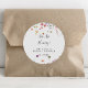 Este adesivo de favor de chuveiro de noiva clássico e colorido é perfeito para um chá de noiva moderno. O design apresenta flores silvestres amarelas, roxas e brancas com folhagens em um fundo de aquarela rosa e verde.