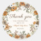 Adesivo lindo "Muito Obrigado" com aquarela de outono enferrujado, flores laranja queimada e folhagens. Este design floral moderno é perfeito para criar papelaria temática de outono! Torne-o seu com facilidade, inserindo suas informações. Um modelo de adesivo elegante para tornar a ocasião ainda mais especial.