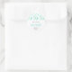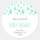 Cute gotas de cor verde menta caem em direção aos seus detalhes personalizados neste adesivo de chá de bebê neutro, sprinkle ou chá de casal. Ideal para selar envelopes de convites ou lembrancinhas. Criado por Thisisnotme©