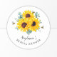 Essas etiquetas para chá de noiva apresentam um design floral em aquarela com girassóis, folhas de eucalipto, abelhas e favo de mel. Personalize o texto com o nome da noiva. Suprimentos para festa de chá de noiva combinando também disponíveis.