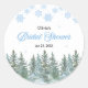 Adesivo Redondo Clássico para Chuva de Noiva com Árvores de Pinheiro de Inverno e Flocos de Neve.