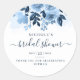 Adesivo Redondo Clássico Chuva de Noiva Floral em Azul Naval em Script de Água. Perfeito para sua chuva de noiva e outros eventos especiais e fácil de personalizar clicando no botão "Personalizar". Com flores modernas e script.
