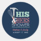 O adesivo Chuveiro de Casal Prático Martelo e Batedeira apresenta um martelo e um batedeira, ferramentas dele e dela para um convite de chuveiro de casal.