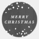 Criado para combinar com o cartão de Natal "Snow Globe", este adesivo festivo apresenta a saudação "Feliz Natal" e um punhado de pequenos pontos que criam a ilusão de neve caindo. Há uma textura sutil de pintura ao fundo. Estes adesivos são perfeitos para etiquetar presentes e lembranças de festa, ou podem ser usados para selar envelopes de Natal.