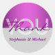Este adesivo redondo tem um fundo roxo e cinza de luz vibrante com duas tonalidades, no qual as palavras obrigado você e o nome do casal aparecem. PERSONALIZAR TI - Altere o texto para atender às suas necessidades ou exclua modelos usando o botão "personalizá-lo". IDEAL FOR - Elegante, clássico e na moda "reuniões formais, eventos e partidos", tais como casamentos, noivados de Hollywood, aniversários de "temores roxos e cinzas", "bat mitzvah", "doces dezesseis" ou doces 16; quinceanera e festas de "chá de panela", ou para qualquer pessoa que procure um eterno e um design clássico que seja ultra-feminino. Eles fazem um envelope excelente e selos de "favor do casamento". SOLICITAÇÕES PERSONALIZADAS - Se você quiser usar este design em outro produto ou quiser discutir as alterações que você precisar, entre em contato comigo em clientrequestrw@gmail.com e poderemos discutir seus requisitos e custos, se houver algum aplicativo.