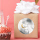 O chá de fraldas neutro por sexo sonhador favorece o adesivo que apresenta o céu em cinzas de aquarela com estrelas de brilho dourado falso e lua. O texto diz "estamos sobre a lua."