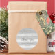 Adesivo redondo a favor do chá de fraldas com brilho de prata sujo e fundo de cinza.