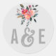 Estas selas modernas de invólucro de flores de inverno de cinza são perfeitas para um casamento elegante. O design apresenta um buquê floral de pedras de coral, cor-de-rosa e pêssego em uma cinza prateada. Personalize o rótulo com as iniciais da noiva e do noivo.