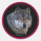 Uma majestosa Cinza Alpha Masculina Wolf mostra este adesivo legal do colecionador. 25% dos royalties obtidos com a venda deste design adesivo são doados diretamente aos Defensores da Vida Selvagem em: www.defenders.org.