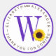Este obrigado circular de monograma personalizado que você cola, é personalizado com seus nomes e iniciais. "Obrigado por vir" com seus nomes. Este rótulo de amostra é apresentado em roxo e castanho, com uma flor de sol amarela. Personalizar todas as cores e fontes. Para ver mais maravilhosos produtos de casamento ou chás de fraldas, visite "A Princesa Húngara - A Boutique" em zazzle.com/hungaricanprincess*. Parabéns!