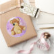 Lindo ursinho com fundo roxo, é destaque neste adesivo circular. Use este adesivo fofo para envios especiais, álbuns de recortes, decoração e presentes para crianças ou fãs de ursinhos!