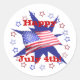 Cartazes redondos para celebrar o Dia da Independência, ou para qualquer dia com o texto "Feliz 4 de julho".