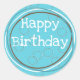Feliz Aniversário Círculos Turquesa Branco Marrom Adesivo Redondo Clássico com fundo aqua - pequenos círculos desenhados à mão, tanto marrom quanto azul-turquesa. Um adesivo interessante, borbulhante e fora do comum que pode dizer o que você quiser! Feliz Aniversário é o que temos aqui com os elementos de círculos desenhados à mão flutuando por todo o adesivo. Cartões de aniversário, presentes e embalagens podem ser todos arrumados com apenas um pequeno adesivo!