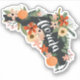 Prepare seu estado natal ou lugar de férias favorito com este bonitinho adesivo de contorno da Flórida com um mapa de silhueta do estado enfeitado com flores tropicais coloridas, folhagem verde e laranjas suculentas. O nome do estado é inscrito dentro no script com letra manual.