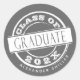 Vinheta de cinza legal e moderna com texto branco "classe de" dentro círculo, simulando um carimbo. Basta adicionar o nome e o ano de graduação. Use-o como um adesivo de decoração em favor da festa de formatura ou selo de envelope.
