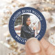 Adicione um toque personalizado aos anúncios de graduação da faculdade ou do segundo grau e aos convites com esses adesivos personalizados de fotoredondos / selos de envelopes. (DICA DE IMAGEM: Uma maneira fácil de centralizar uma foto exatamente como você deseja é recortá-la antes de carregá-la no site do Zazzle.) Todo texto é simples de personalizar para incluir o nome da escola, formando de parabéns, amor e obrigados, citação inspiradora, ditado motivacional, etc. Design apresenta uma imagem de sua escolha, marinho, borda azul e branca, e na moda, nome do formando e ano de classe em um círculo. Faz uma adição elegante a favores e decorações de festas de formatura. Como opção, mude o texto curvo para um nome e endereço para uso como etiquetas de endereço de volta redonda em convites ou notas de agradecimento. Essas etiquetas versáteis podem ser usadas em qualquer ocasião, como aniversário, aniversário, casamento, chá de panela, chá de fraldas etc.