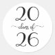 Personalize o ano para uma bela design de tipografia cursiva que diz: classe de [YEAR]. O design chic, moderno e personalizável apresenta palavras de script preto em um fundo branco. Excelente para embalagem de presentes de graduação e selos de envelopes.