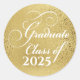Adesivo elegante de graduação em branco e dourado falso para anexar a anúncios de graduação, imitações de festa de formatura, salvar a data e outra correspondência em papel de graduação. Perfeito para a classe graduada de 2025. Fonte elegante do estilo de script.