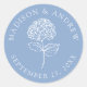 Add a soft and polished detail to your wedding with these blue hydrangea wedding stickers, featuring a white hydrangea and lettering set against a blue background for a fresh and airy look. The circular layout highlights the couple’s names and wedding date around the center design, creating a clean and cohesive presentation. Ideal for sealing envelopes, labeling favor bags and boxes, or using on welcome bags, these stickers are perfect for spring and summer weddings, garden settings, and coastal weddings. A beautiful way to extend your wedding design across your details.