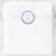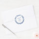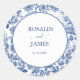 This elegant round sticker features classic blue toile botanical illustrations surrounding the couple’s names and wedding date in a timeless layout. The vintage-inspired blue and white palette brings a romantic European feel, perfect for garden weddings, classic celebrations, and destination weddings.