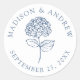 Add a tailored finishing detail to your wedding stationery with these navy hydrangea wedding stickers, designed with a clean and classic look. A hand-drawn hydrangea sits at the center of the design on a white background, with the couple’s names and wedding date arranged around it for a structured and polished layout. Ideal for sealing envelopes, labeling favor bags and boxes, or using on welcome bags, these stickers complement formal weddings, coastal venues, and traditional wedding settings. A polished way to carry your wedding design throughout your details.