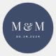 Add a timeless and personalized touch to your wedding details with this Classic Navy Blue Monogram Typography Wedding Round Sticker. Featuring a deep navy blue background with clean, elegant typography, it beautifully showcases your custom monogram and special date with a refined, sophisticated contrast. Perfect for sealing envelopes, decorating favors, or enhancing your wedding stationery, this sticker brings a polished and classic finish to your celebration.