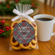 This elegant Christmas label features a plaid pattern and prominently displays the classic message "Season's Greetings." It includes shades of green, dark blue, and red, evoking a classy and nostalgic English holiday atmosphere. You can easily personalize the label with your family's name. This sticker is perfect for decorating your Christmas mail in a traditional colonial style, as well as for a charming country cottage or log cabin theme.