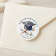 This classic watercolor sticker design features a traditional black graduation cap with a gold tassel resting beside a rolled diploma tied with an elegant red ribbon. It is the perfect personalized touch for high school or college graduation announcements, party favors, and thank you envelopes. Easily customize the text template to include the graduate's name, class year, and school name to make it completely your own. Order yours today to beautifully seal and celebrate your special academic milestone!