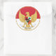 Emblema nacional da Indonésia. O emblema nacional da Indonésia chama-se Garuda Pancasila. A parte principal do emblema nacional indonésio é o Garuda com um escudo heráldico no peito e um pergaminho apertado pelas pernas. Os cinco emblemas do escudo representam Pancasila, os cinco princípios da ideologia nacional indonésia. As garras Garuda agarrando um rolagem branco de fita gravada com o lema nacional Bhinneka Tunggal Ika escrito em texto negro, que pode ser vagamente traduzido como "Unidade na Diversidade". Garuda Pancasila foi projetada pelo sultão Hamid II de Pontianak, supervisionado por Sukarno, e adotada como emblema nacional em 11 de fevereiro de 1950.