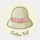 Chapéu amarelo com fita e arco cor-de-rosa.