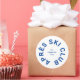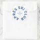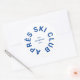 Clube Après Ski, adesivo redondo da crista da estância de esqui azul cool. Personalize com o ano da sua viagem de esqui, nome da estância de esqui e localização. Perfeito para viagem de esqui de destino ou para lembranças de festa temática após esqui. Projetado para combinar com nossa Coleção Clube Après Ski.